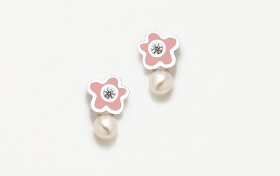 Brincos ARP New Bebe Flor Rosa Pérola-Zircónia 075NBE