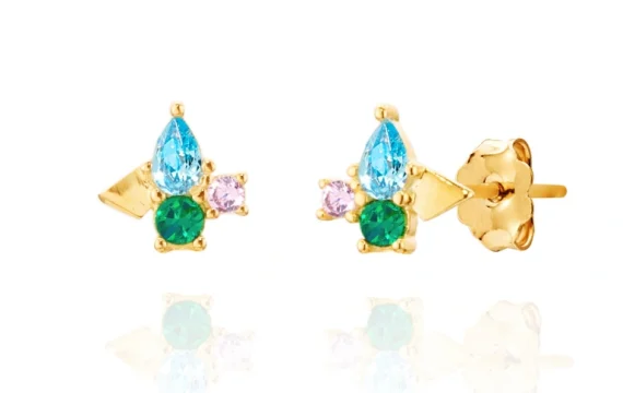 Brincos Prata Dourada 925 Link Solitário Colorido 1LINK-1733A