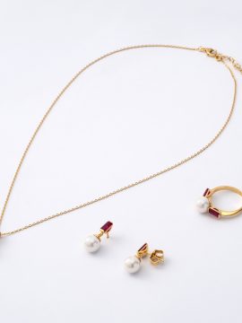 Brincos Ouro Amarelo 19,2k Retangular com Pérola e zircónias