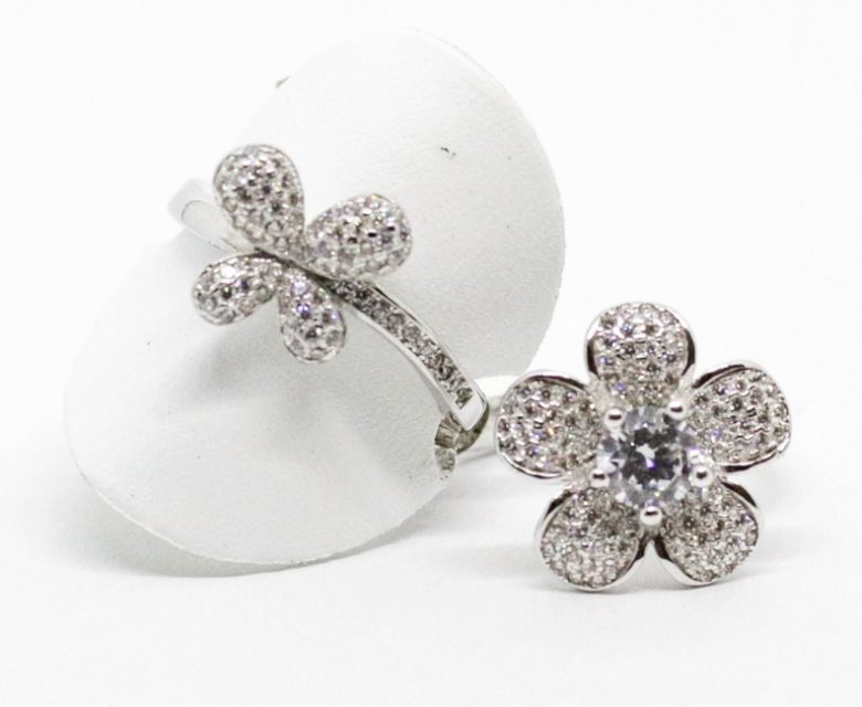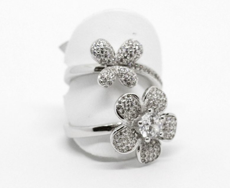 Anel Prata duplo Flor e Borboleta Com Zircónias