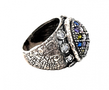 Anel Prata Com 3 pedras Naturais e Zircónias