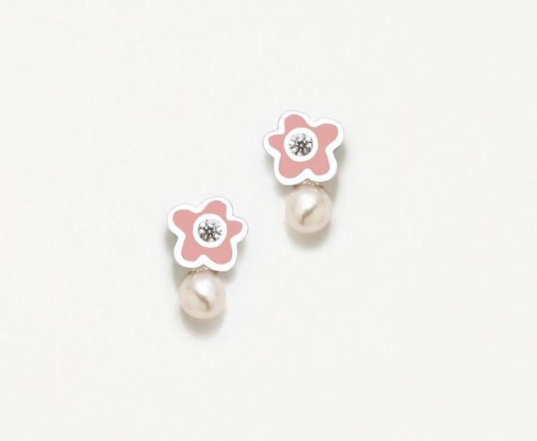 Brincos ARP New Bebe Flor Rosa Pérola-Zircónia 075NBE