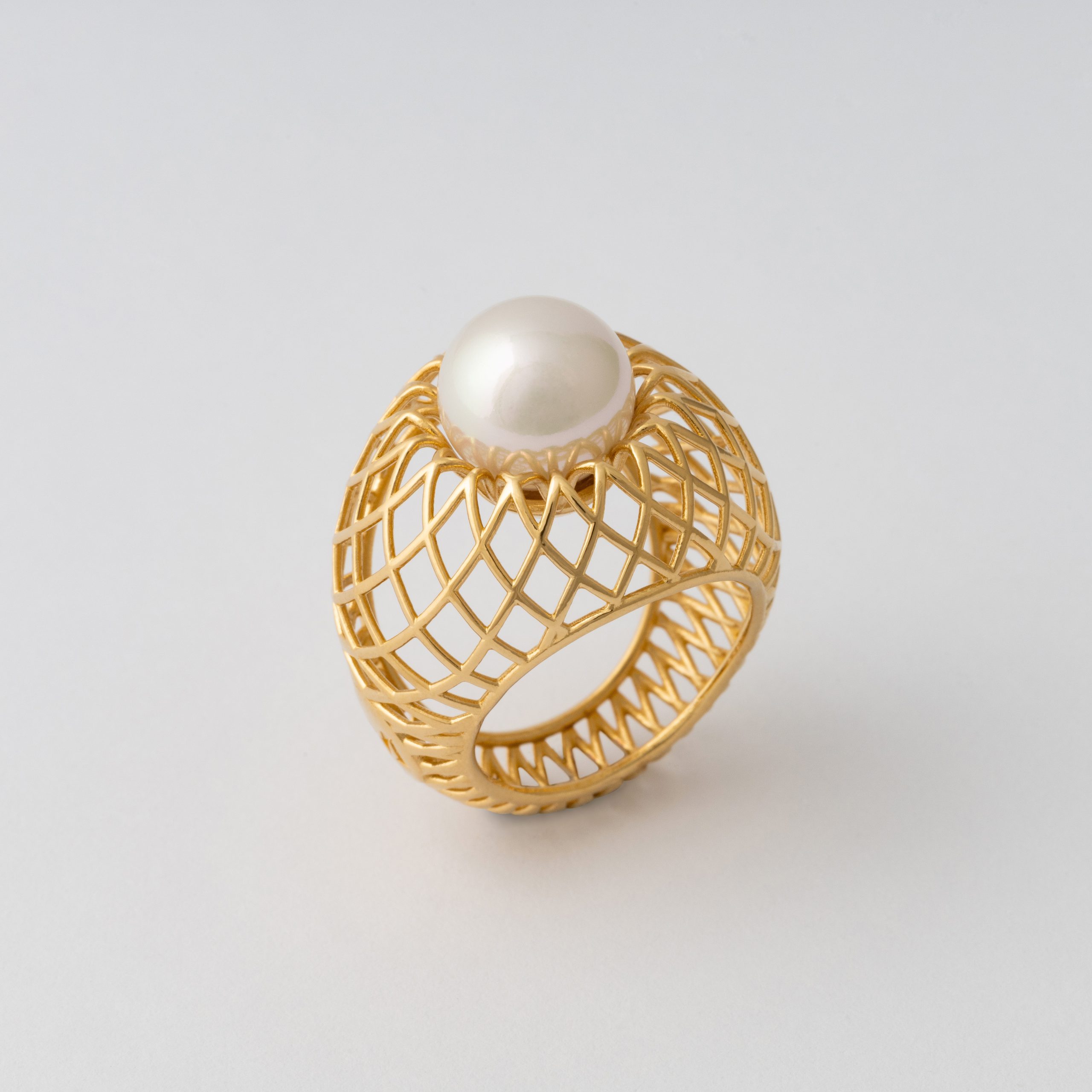 Anel Majorica Etna 17220.01.1.913.010.1 em Prata Dourada trabalhada e com Pérolas Orgânicas. Uma peça arrojada