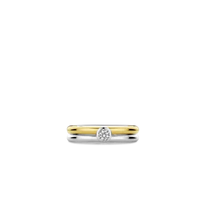 Anel Ti Sento 12345ZY/52 em Prata de Lei 925 bicolor. A parte dourada leva um banho de Ouro. Tamanho 12. Outros tamanhos disponíveis consoante encomenda a fornecedor.