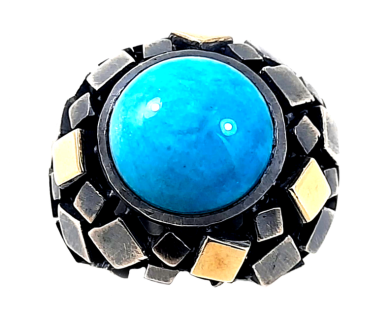 Anel Prata e Ouro com Amazonite