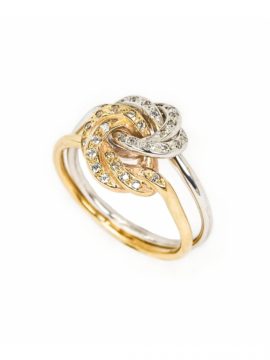 Anel Ouro Bicolor Nó com zircónias