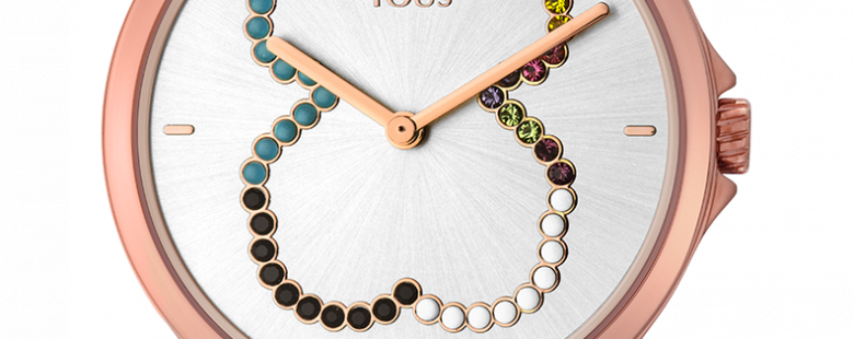 Relógio TOUS Motion Straight urso em aço IP rosado com cristais