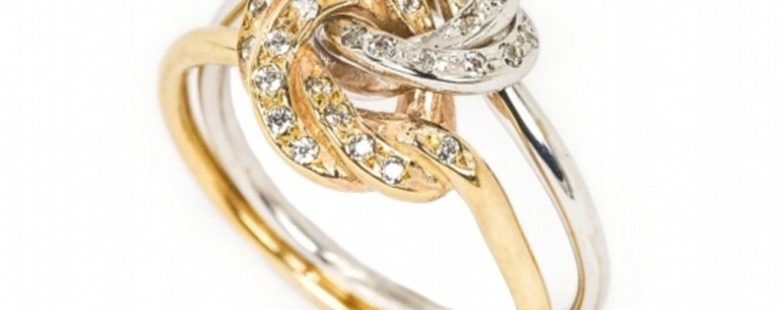 Anel Ouro Bicolor Nó com zircónias