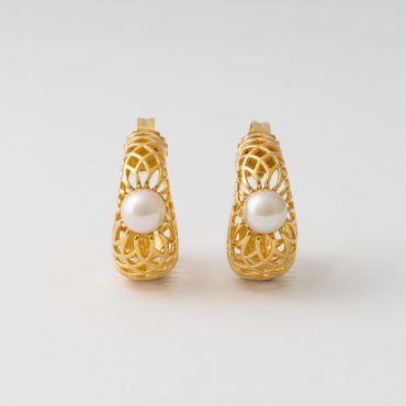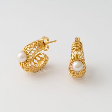 Brincos Majorica Etna 17224.01.1.000.010.1. Brincos com uma malha delicada em prata de lei 925 dourada e perolas orgânicas