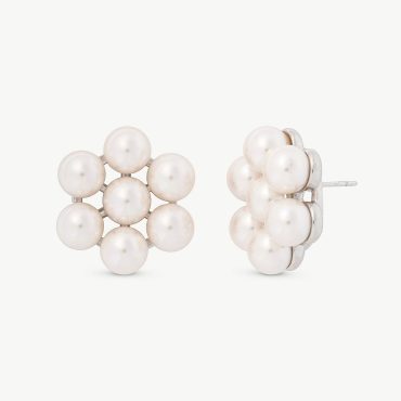 Brincos Majorica Junco 09135.01.2.000.703.1 em prata com acabamento em Ródio e pérolas orgânicas. A peça que faltava para completar o seu look