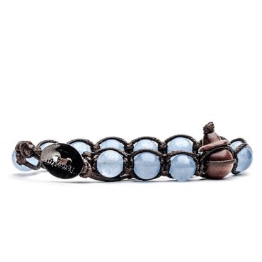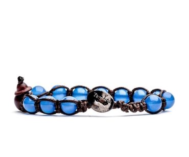 A ágata azul representa a cor do céu, a pureza, sabedoria e paz. Neste caso particular, a tonalidade do céu dá a esta pulseira um aspeto divino e elevado. É a pulseira que identifica o sagrado.