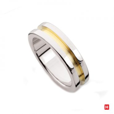 Aço 316L Acabamento: polido com friso dourado Largura: 6mm Tamanho: do 10 ao 28