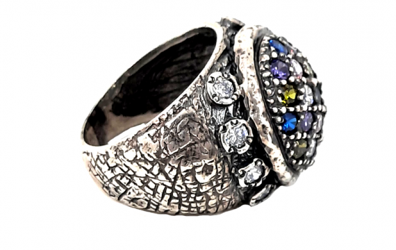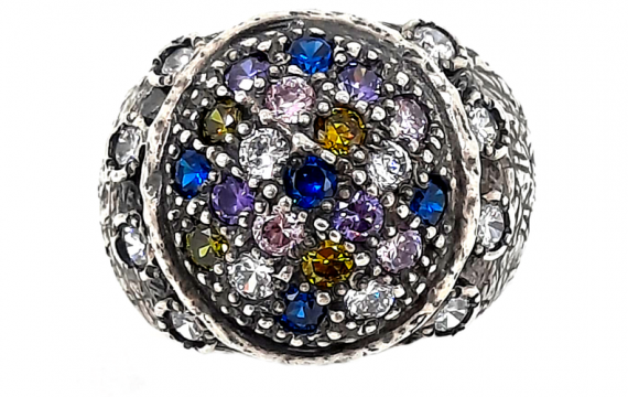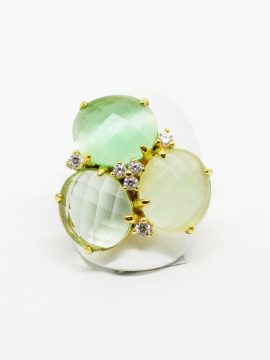 Anel Prata Com 3 pedras Naturais e Zircónias