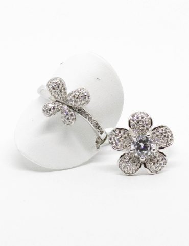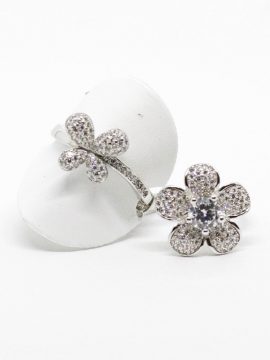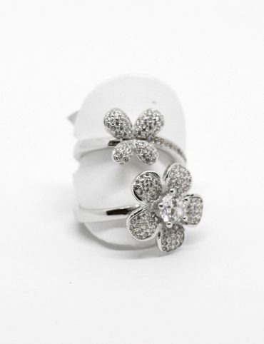 Anel Prata duplo Flor e Borboleta Com Zircónias
