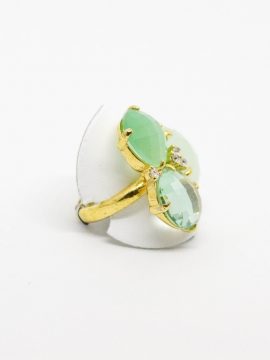 Anel Prata Dourada Com 3 pedras Verdes tam. 15