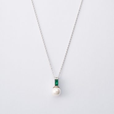 Colar Majorica Selene 17270.01.2.N42.530.1 em Prata com acabamento de ródio e com pérolas orgânicas e zircónias verdes