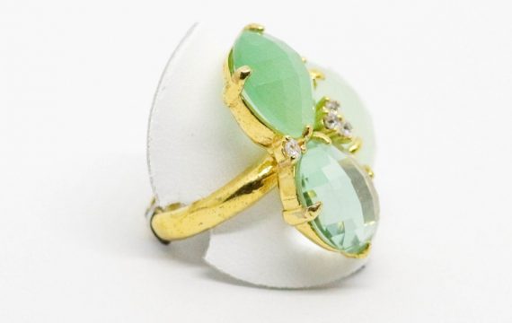 Anel Prata Dourada Com 3 pedras Verdes tam. 15