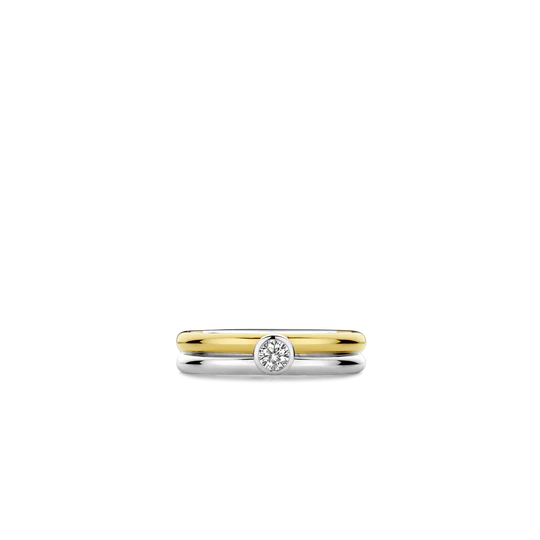 Anel Ti Sento 12345ZY/52 em Prata de Lei 925 bicolor. A parte dourada leva um banho de Ouro. Tamanho 12. Outros tamanhos disponíveis consoante encomenda a fornecedor.
