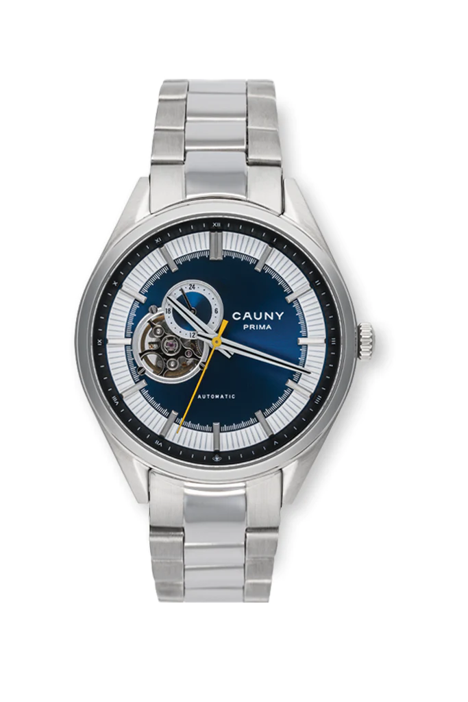 Robusto e imponente, o Cauny Prima Open Heart Steel Blue é o primeiro relógio automático da Cauny com uma bracelete em aço sólido de alta precisão. Concebido para equilibrar elementos tradicionais com um espírito irreverente, este relógio tem um mostrador azul, reminescente do ADN marítimo da Cauny, através do qual pode observar o mecanismo automático em movimento graças a uma elegante abertura Open Heart. Descubra o engenho de um relógio automático com um estilo moderno com o modelo Cauny Prima Open Heart Steel Blue.