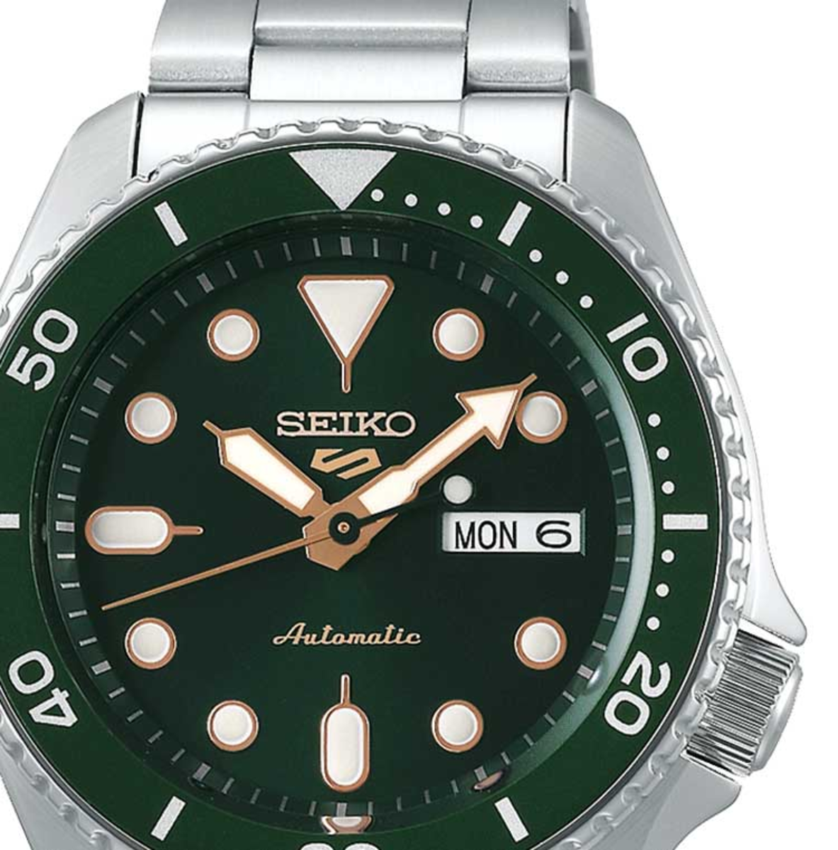 O novo Seiko 5 Sports inspira-se nas 5 décadas de sucesso que o antecederam, e o seu design baseia-se num dos relógios desportivos mais apreciados de sempre da Seiko. Cada criação desta nova colecção partilha uma versão actualizada desta caixa tão celebrada, e todos apresentam o mesmo ponteiro de minutos em forma de seta, índices de hora distintos e um bisel rotativo unidireccional. Os movimentos são todos 4R36, um calibre automático testado e comprovado, com 24 jóias, possibilidade de dar corda manual, e ponteiro de segundos que pára quando se puxa a coroa, para permitir um ajuste da hora mais preciso usando um sinal horário como referência.