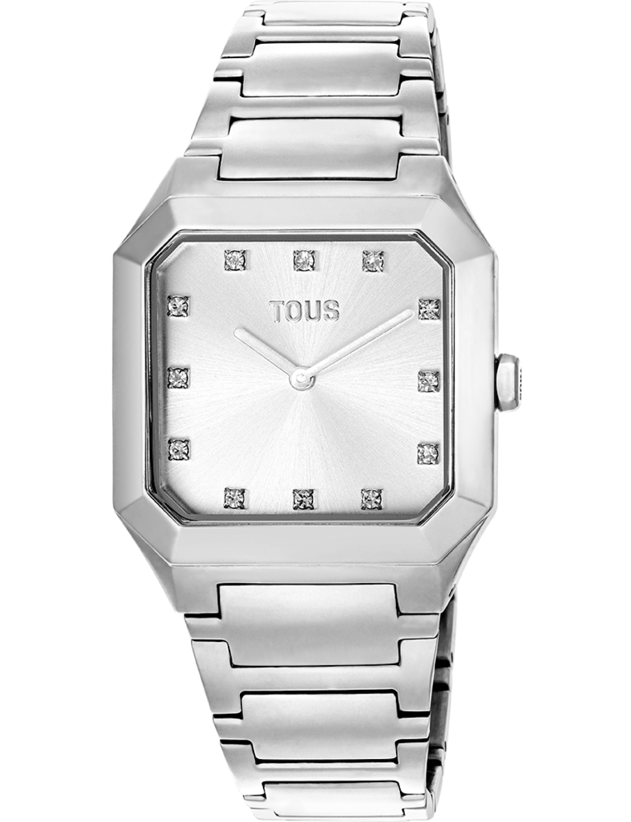 Inspirado nos cortes das pedras preciosas, joalharia e relojoaria juntam-se no nosso design de relógio analógico de caixa quadrada com bracelete em aço, mostrador em metal e cristais facetados nos marcadores de horas da coleção TOUS Karat Squared. Leva todo o estilo no teu pulso!