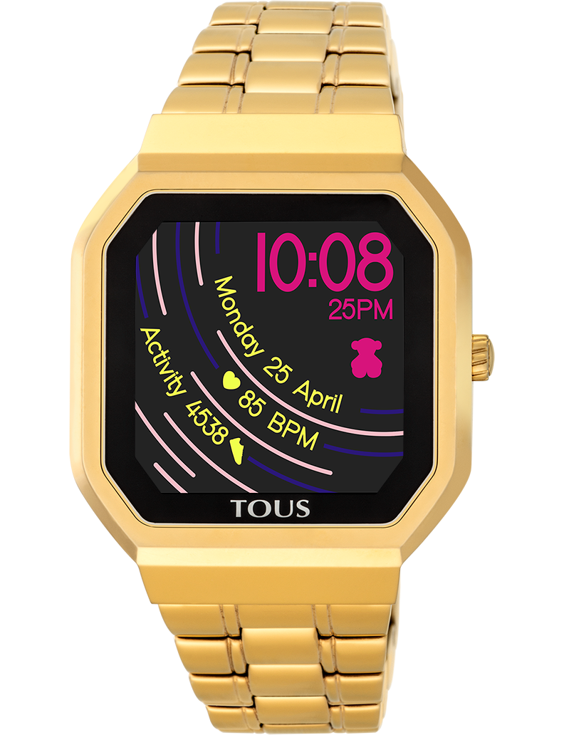 Funções: Horas, minutos, mês, dia, dia da semana, contador de passos, contador de calorias, distância percorrida em milhas ou quilómetros, frequência cardíaca, atividades desportivas (correr e caminhar), cronógrafo 1/10 segundos, 3 alarmes de vibração, notificações e 6 mostradores TOUS.